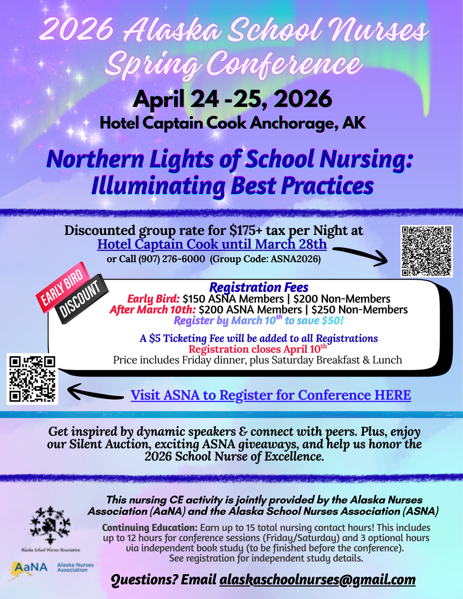 The Alaska Nurses Association (AaNA) in partnership with the Alaska School Nurses Association (ASNA) are proud to present: